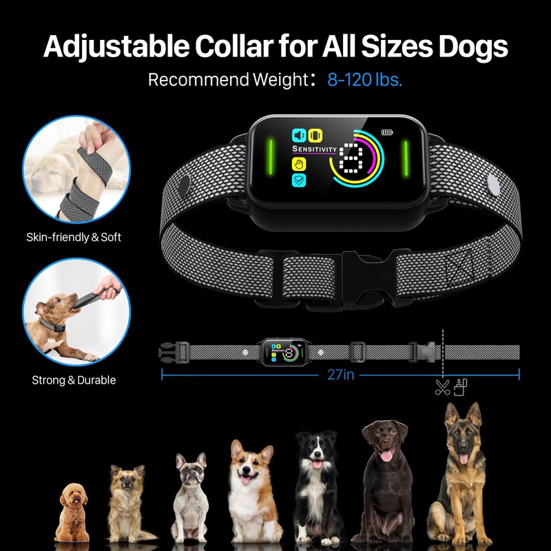 - Suitable for dogs of all sizes: The DINJOO no barking collar collar measures 27 inches. This bark collar for large dog is made of soft and skin-friendly nylon, suitable for dogs weighing over 8-120 pounds and with neck sizes ranging from 6-27 inches