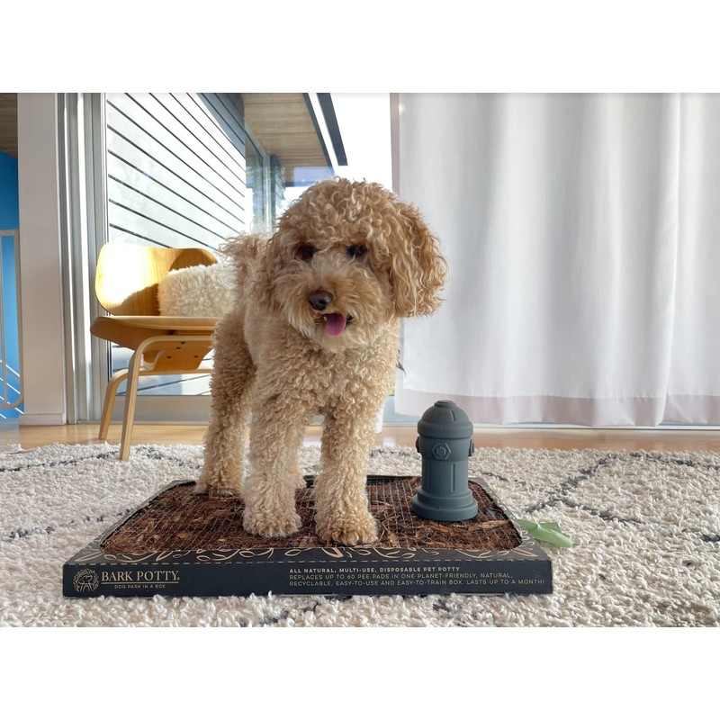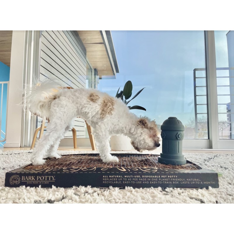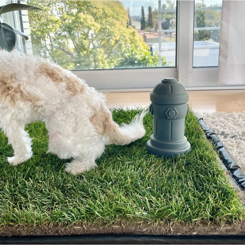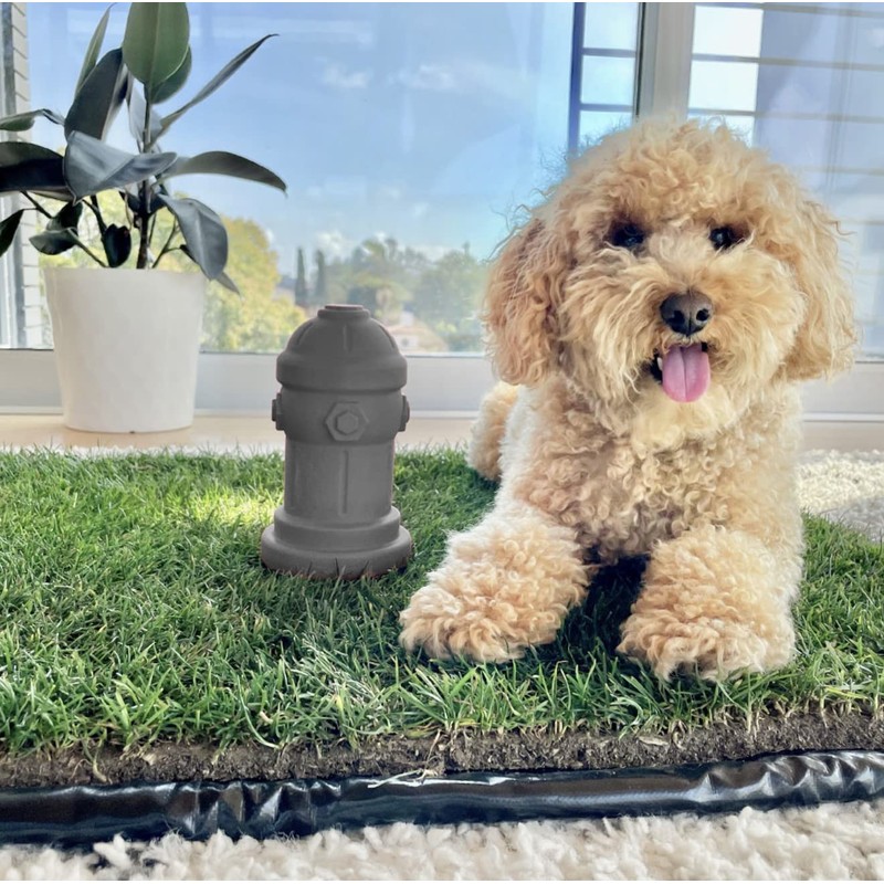 Ready, aim, pee! This silicone fire hydrant is the ideal accessory for your DoggieLawn. It's perfect for giving your male dog a place to aim. Simply place the hydrant in the center of your DoggieLawn and say goodbye to messes. The hydrant can also be used for potty training! With a slightly damp paper towel, you can wipe up a urine accident in the home or slide the paper towel under your dog while they're peeing outside. Wipe the paper towel on your fire hydrant and now it's scented with your dog's own urine! Now your puppy will be reminded that the DoggieLawn is their new potty place since they'll be instinctively attracted to their own scent on the hydrant. Size: 4 x 7 inches. To weigh down, fill with something dry such as pebbles, sand, beans, etc.