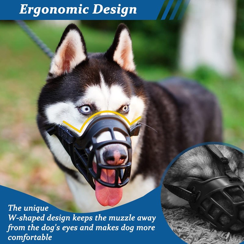- ERGONOMICS DESIGN: The unique W-shaped design keeps this cage dog muzzle away from the dog's eyes, which can protect your dog's eyes from friction