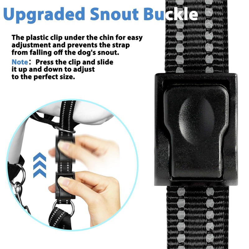 - Easy to Fit: The head collar for dogs, no pull dog nose leash features a quick-release snap, so you can put it on your dog in just a few minutes. The length of the shoulder strap is adjustable, so you can choose the most comfortable length for your dog. Our gentle collar comes with a safety leash that attaches to a dog head collar or leash for extra safety when out in the open
