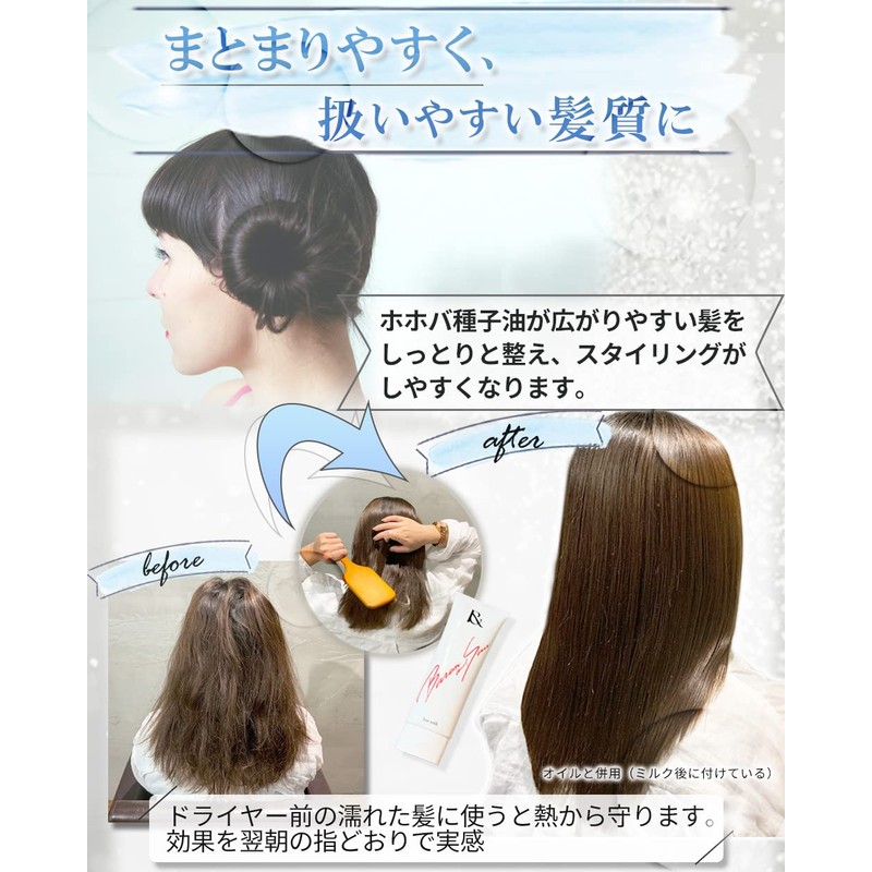 - (For Smooth & Shiny Hair) Just blend it with wet hair before the dryer, and you can achieve a smooth and glossy hair without disturbing the volume. Can be used as a gloss after drying