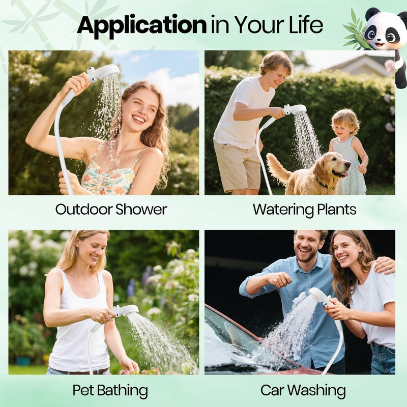 - 🐼 Adorably Cute Panda Design: This outdoor shower pump features an irresistibly cute panda shape with smooth curves and playful details, making outdoor showers way more fun! Perfect for baths, pet cleaning, or post-adventure rinses - our panda shower pump combines practicality with delightful aesthetics for an enhanced outdoor experience!
