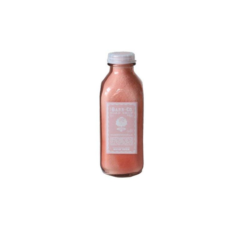 Item: Barr-Co. Bath Salt Soak - Honeysuckle A luxurious bath soak made of mineral salts, vitamins and fragrance. Eases the pain of stiff muscles and joints while relaxing you with a sonderful fragrance. 32 ounces. Reusable glass jar. A floral honeysuckle scent. Small-batch made in the USA