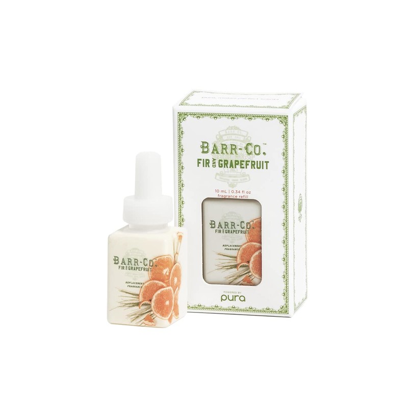 Barr-Co. has partnered with Pura to create a new way to experience the iconic Barr-Co. fragrances. Pura knows the power of good fragrance, so it only seemed fitting that we team up to create a smart new way to enjoy your favorite Barr-Co. fragrances with complete, effortless control. Fir and Grapefruit is a juicy grapefruit zest and the clean fresh woodsy notes of fir oils create an intense rush of invigorating, yet comforting notes.