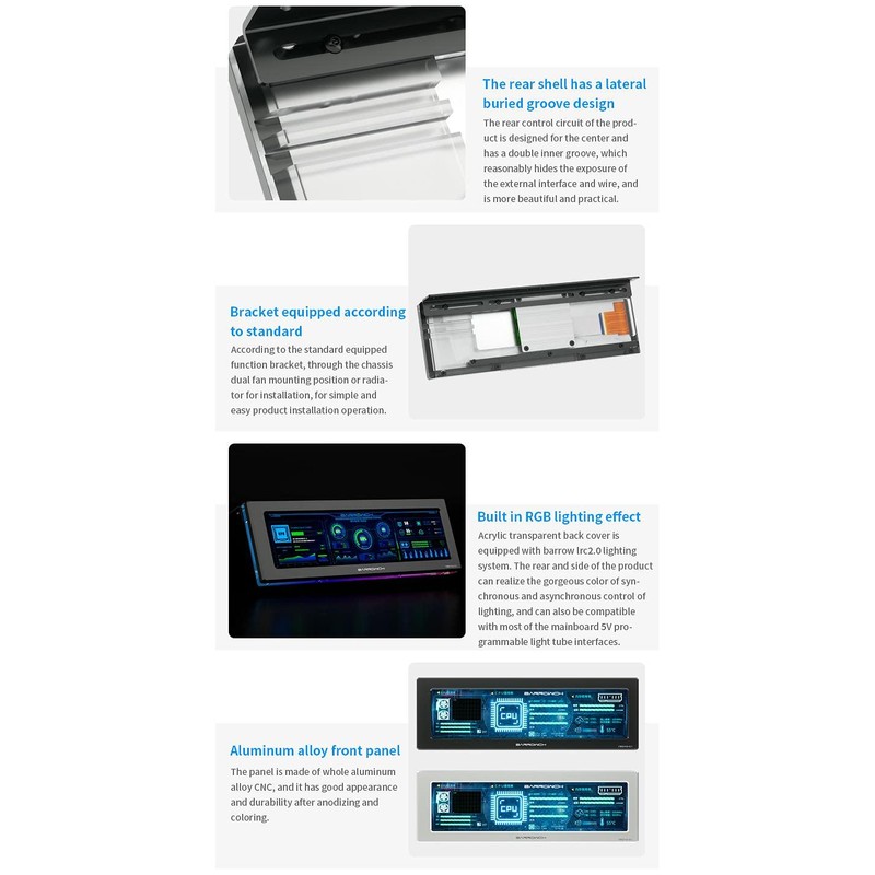- Create a unique rig with this BarrowCH 1920x480px High Definition IPS LCD Screen featuring the popular AID64 system monitoring software.