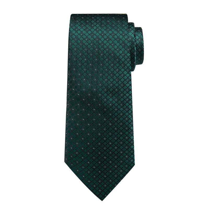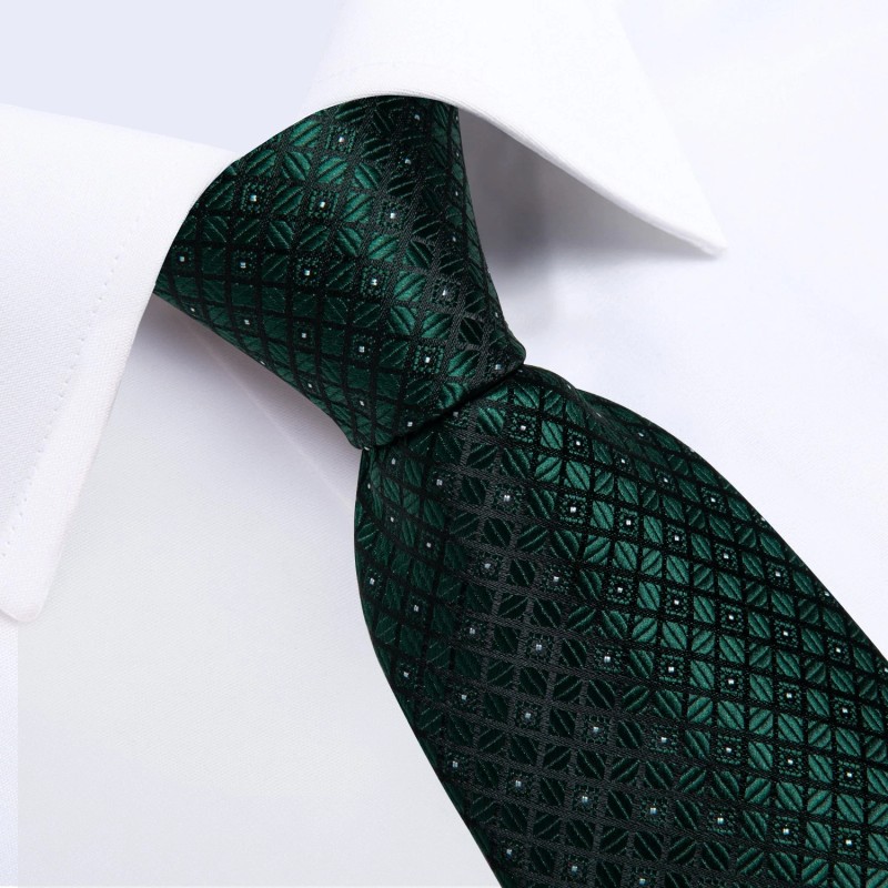 Barry Wang Green Plaids Necktie Mens Tie & Hankie & Cufflinks & Tie Pin Set Gift Event