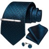 Barry Wang Navy Blue Plaids Necktie Mens Tie & Hankie & Cufflinks & Tie Pin Set Gift Event