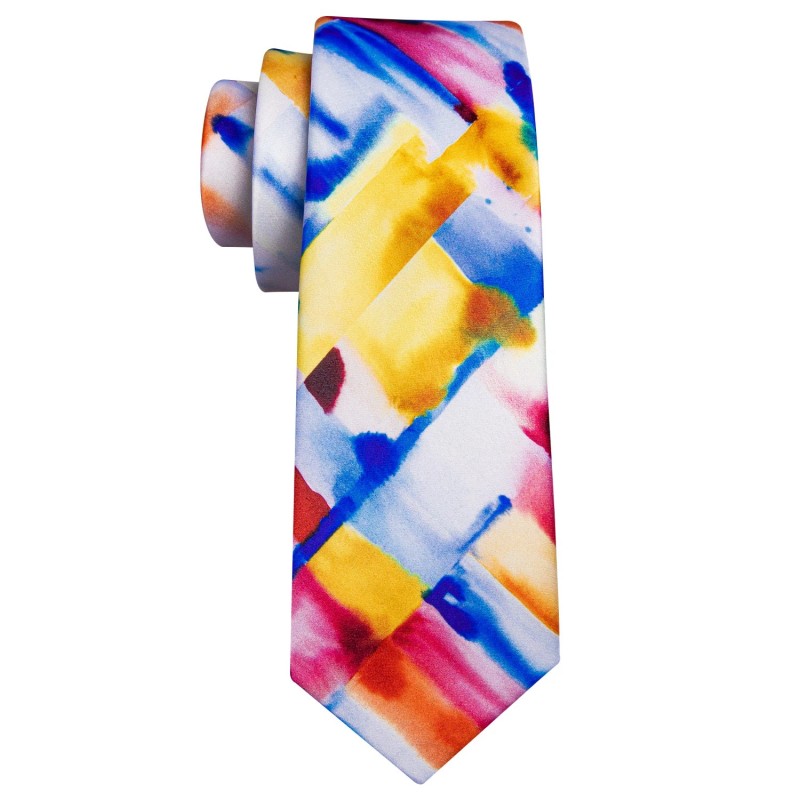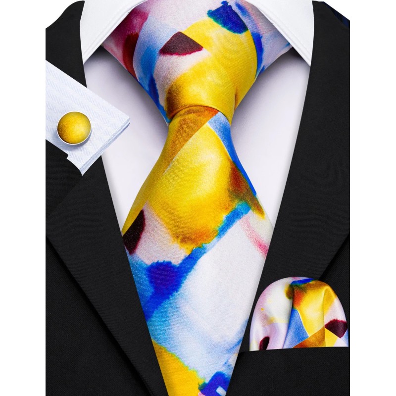 Barry Wang Vintage Desigenr Yellow Necktie Mens Tie & Hankie Cufflinks & Tie Pin Set Gift