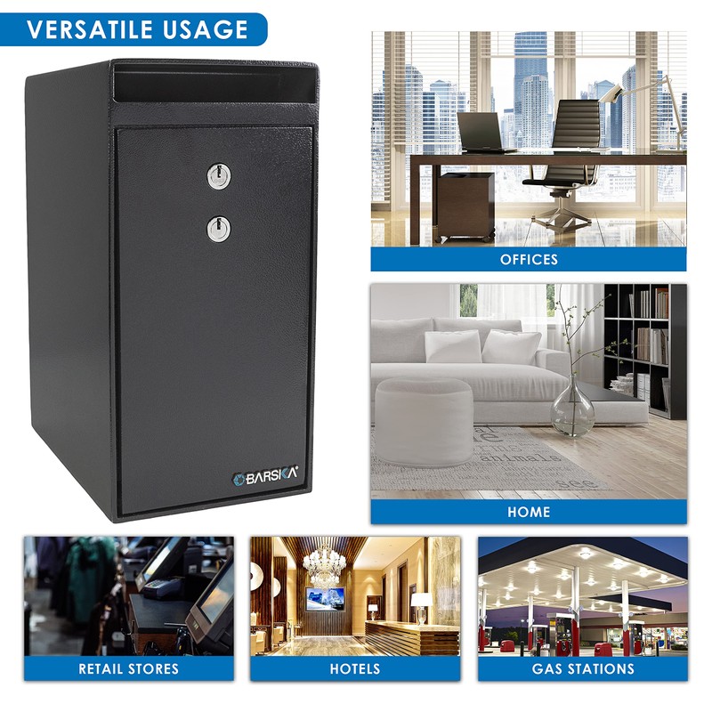 - Dual Key Lock: The All steel depository safe features dual key operated lock and a solid steel 0. 24" thick door for added protection.