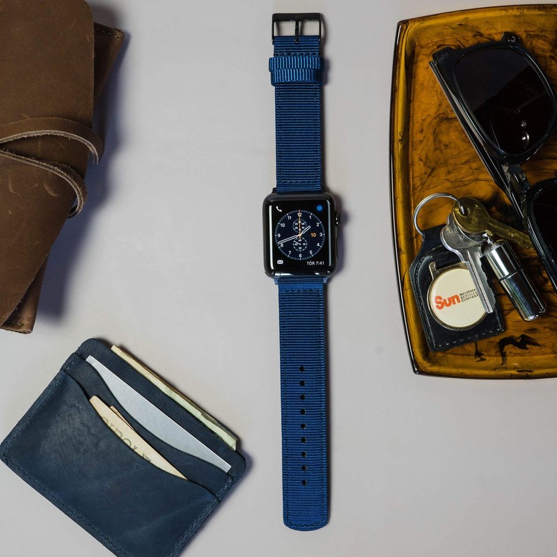 - Our Two-piece military style watch bands compatible with Apple Watch bands are sure to add character and comfort to any Apple Watch. Our nylon straps are water-resistant, colorfast, and feature two nylon keeper loops for a more comfortable fit.