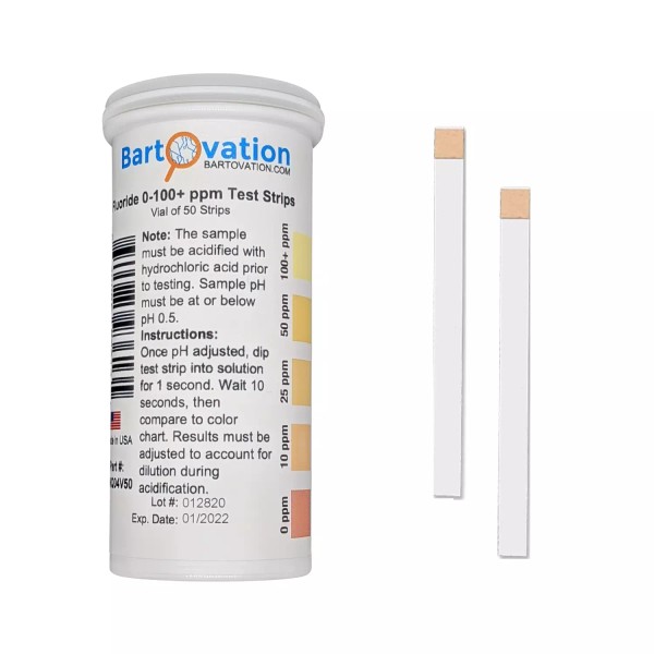 Bartovation Fluoride Test Strips 0-100+ ppm READ DESCRIPTION [Vial of 50 Strips]