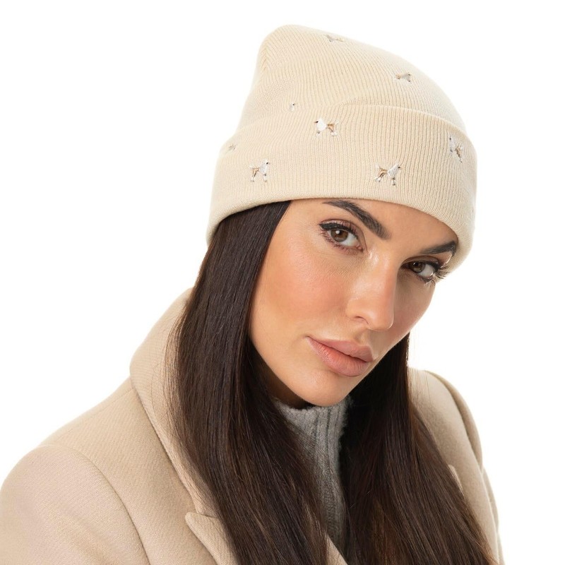 Barts Vinson Poodle Beanie Knitted Hat with Envelope, cream white