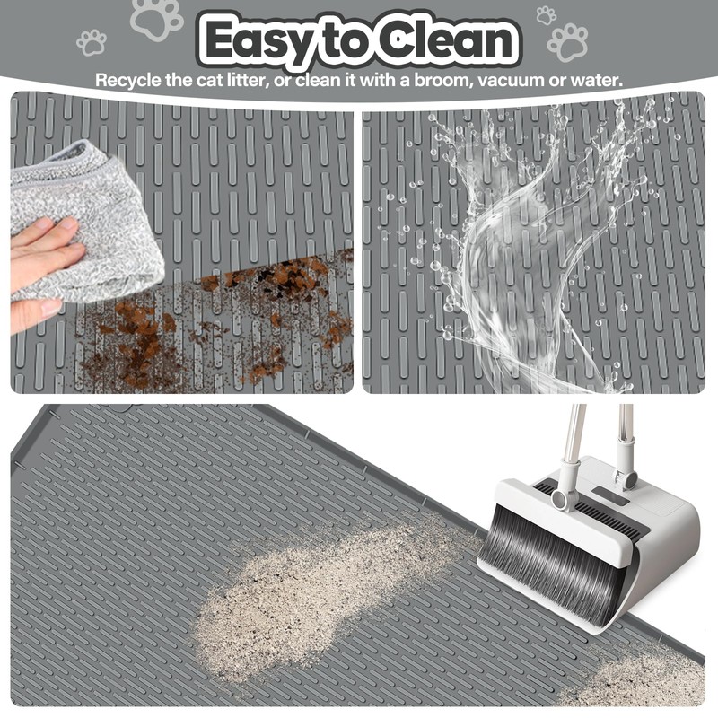 - Comfortable and Lasting Mat: The cat litter mat is made of high-quality silicone, offering a soft texture that protects your cat's paws. Silicone mat is not easy to deform, not easy to damage, and can effectively prevent water seepage, protect your floors