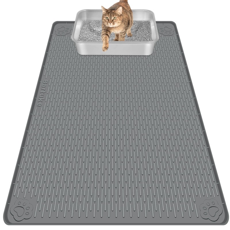 Bartuke Cat Litter Mat, Extra Large 40" x 28" Silicone Mat Litter Trapping Mat for Scatter Control, Soft on Kitty Paws, Easy to Clean (Dark Gray)