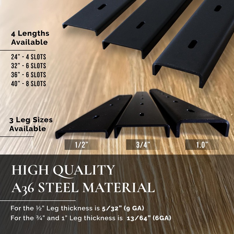 Baru Decor Set of 2 - 40" C-Channel Steel for Tabletop Live Edge Slab Brackets Support, Woodworking, Black Powder Coat Finish, 8 Holes