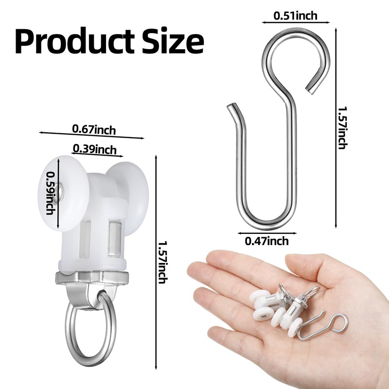 • Compatible size: the curtain tracks have a diameter of 0.59 inches and a total width of 0.67 inches, making them suitable for most curtain rails; The 1.57 inch length of the stainless steel S shaped hooks ensures compatibility with a wide range of curtain panels, room partitions, tulle, and curtains