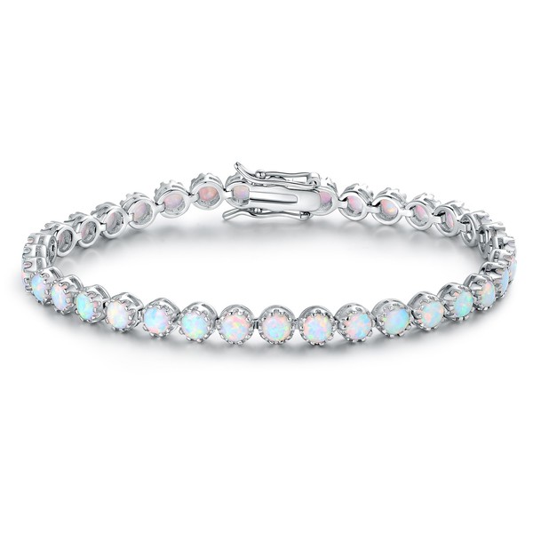 Barzel 18K White Gold Plated Created Opal Bracelet For Women (Silver)