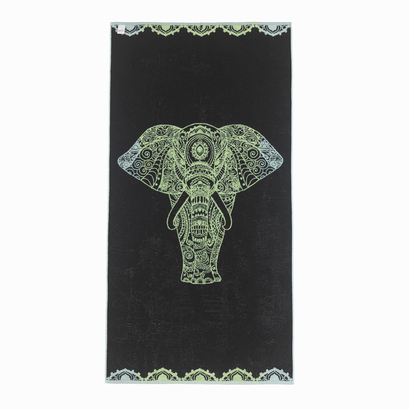 BaSaTex Cotton Beach Towel 90 x 180 cm Beach Towel Bath Towel Made of Terry Cloth Velour 100% Cotton Elephant Design Green Black