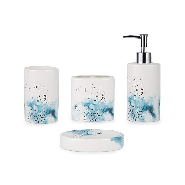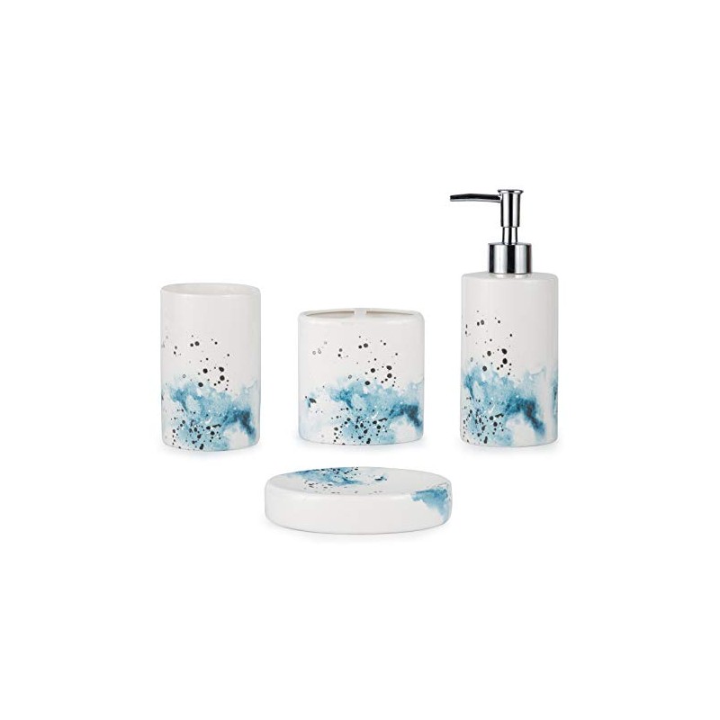 BASDHE Ceramic 4-Piece Bathroom Accessories Set Complete Hand Paint Bath Countertop Accessory Soap Dispenser Set
