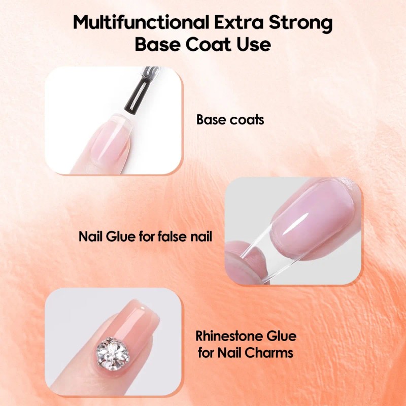 Uso multifuncional: la capa base del esmalte en gel proporciona una aplicación suave. El grosor adecuado hace que sea fácil de aplicar, tanto para principiantes como para diseños de uñas hechos a mano en casa y en el salón de uñas. La base de uñas es adecuada para uñas finas y quebradizas, mejora la elasticidad y la flexibilidad. No solo puede proteger las uñas, sino que también funciona como pegamento con diamantes de imitación para pequeños amuletos y pegamento para uñas postizas y presiona las uñas.