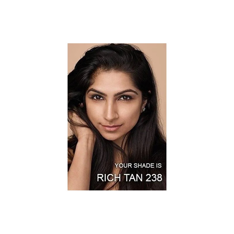 • Tono 238 Rich Tan 🌞: Un tono cálido y bronceado, perfecto para pieles morenas o con subtonos cálidos, que deja un acabado radiante y natural.