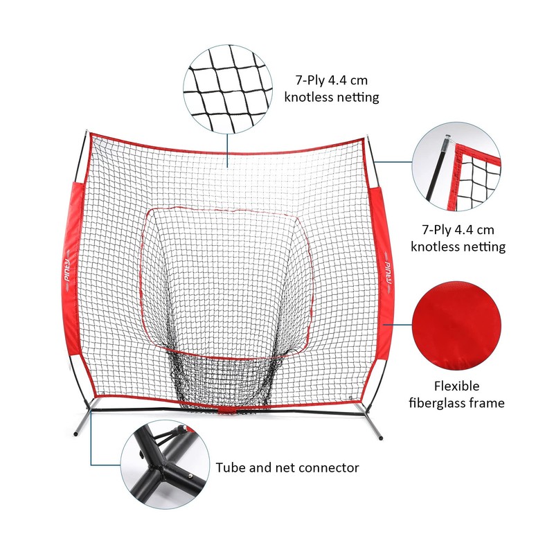- 7’ X 7’ HEAVY-DUTY SPORTS NET - The 7-ply knotless sports netting is thick, durable, and heavy-duty. Don’t let the lightweight frame fool you - it’s sturdy and stable against wind and high-velocity pitching/hitting, plus it provides a large practice space, whether indoors or outdoors.