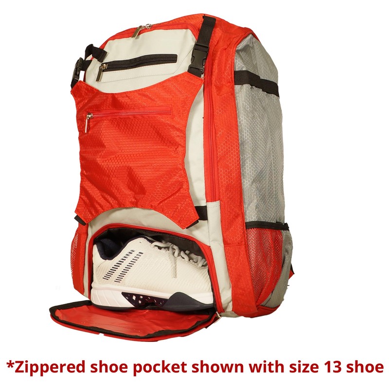 Baseball Backpack with Cleat/Shoe Pocket | Large Capacity | 19.5" T x 14" W x 7.5" D | Holds 4 Bats | External Helmet Storage | 3 Extra Zipper Pockets for Sunglasses, Seeds, Cell Phone (Red/Gray)