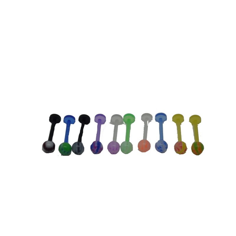 Baseball Bi-Flex Lip Ring Flat Back with Bezel 16G (1.2mm) Acrylic (Neon Yellow Pink)