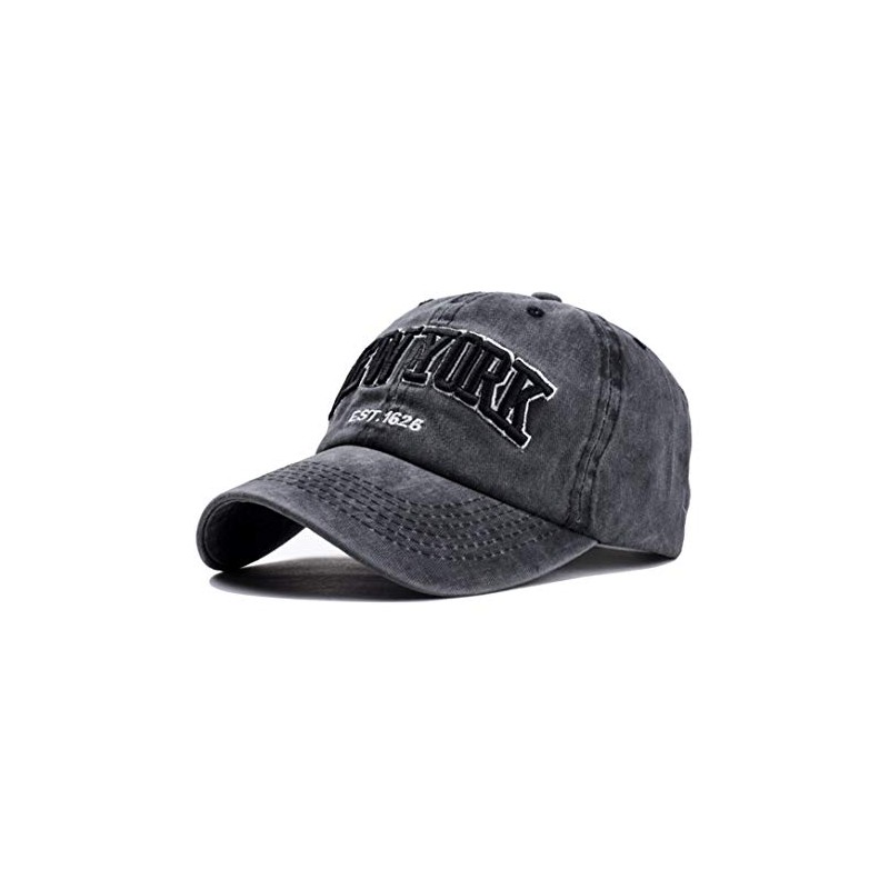 Baseball Hat New-York Distressed-Adjustable-Strapback - Washed Twill Dad Hat Unisex Black