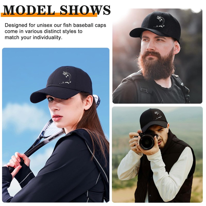 【Uniquely stylish beautiful design】The black baseball cap trucker dad caps has fish bone printing on front, make it easy to look classic and chic.Designed for unisex our baseball caps come in various distinct styles to match your individuality, shows your unique dress sense. It will fit well with your daily outfit , shirt or dress.