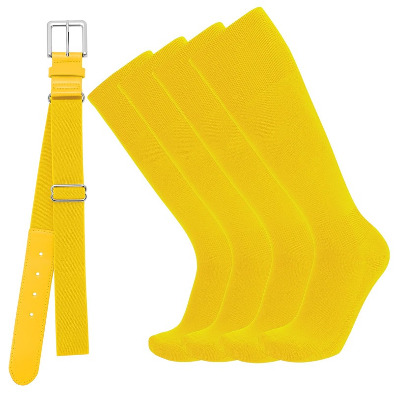 Baseball Socks and Belt Combo for Youth Adult - Softball Socks and Belts for Boys and Grils (Yellow, 2 Pairs of Socks & 1 Belt)