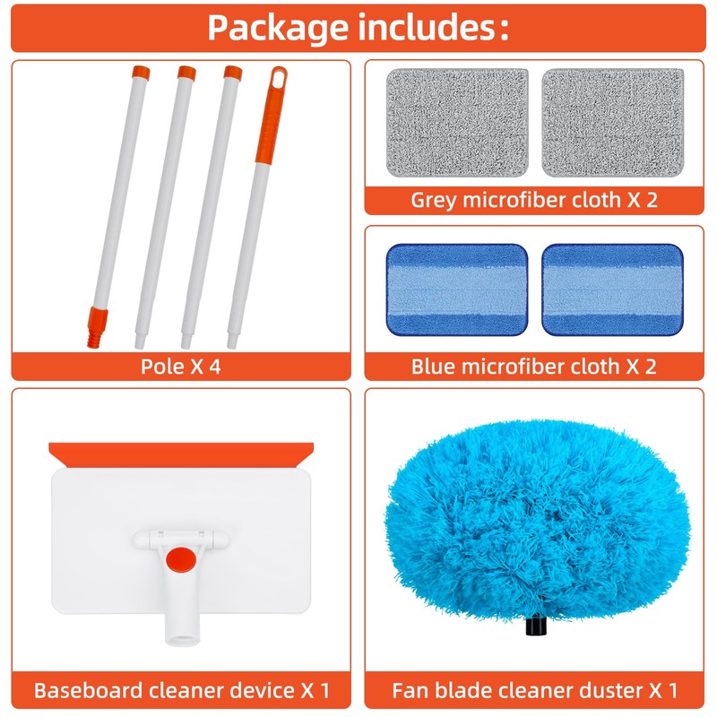 - [Ideal 2-in-1 Cleaning Tool for Every Home] A must have tool for homeowners, renters, or anyone with baseboards and ceiling fans who values safety and convenience. Keep your floor boards and ceiling fans blades dust-free and maintain better air quality in your home effortlessly.