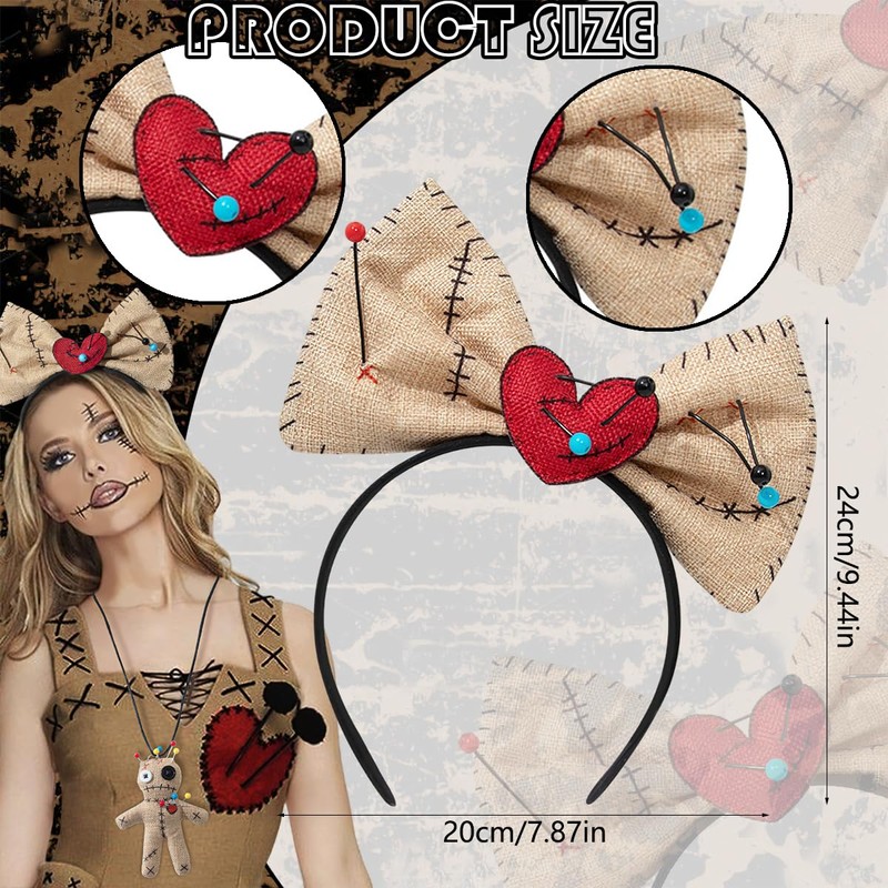 - Design: Using classic bow elements, with the horror doll's broken and scar heart, a few needles inserted in the bow and broken heart, novel and unique, that makes you stand out at Halloween parties