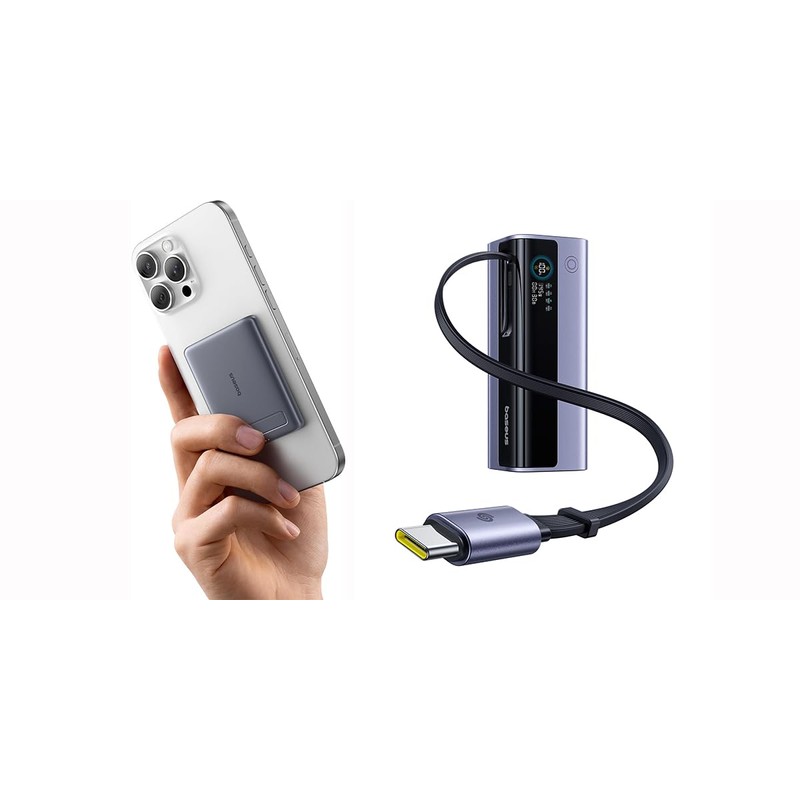 Baseus Picogo Power Bank, Smallest 5000mAh Magnetic Portable Charger with Stand, Qi2 Certified 15W Ultra-Mini MagSafe Battery Pack, Alloy Wireless Travel Fast Charger for iPhone 16/15/14/13/12 Series Baseus Laptop Power Bank, 20,000mAh 145W Portable Charger Built-in Retractable Cable, 4-Port PD Fast Charging Battery Bank with Smart Display, for iPhone/MacBook/Samsung/Dell/HP, and More