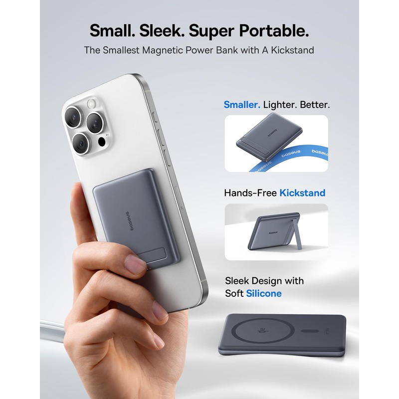 - Smallest But MightySmaller than a credit card (3.4*2.3*0.5 in) and lighter than a smartphone (0.3lb), this magsafe portable charger slips into your pocket, gym bag even wallet effortlessly. Super mini size ensures you'll barely notice it's there until you need instant power on the go. Reminder: It's the smallest 5,000mAh QI2 magnetic power bank on the market that powers your iPhone all day.