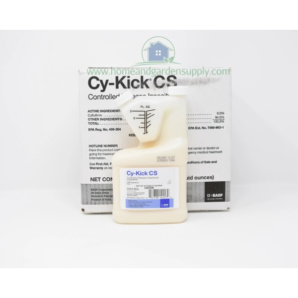 Cy-kick CS liquid concentrate insecticide provides 90 days of full-throttle killing power, controlling insects indoors and outdoors. With a broad spectrum label including spiders, ants, mosquitoes, bees, cockroaches, crickets, fleas, flies, bed bugs, silverfish, ticks, wasps, wood infesting borers and more, you don’t have to pick and choose between different insecticides for different pests. Cy-Kick CS works great against every insect you’re up against, so one product and one application is all you need. Simply mix 1 to 2 oz Cy-kick CS per gallon of water and apply using a small commercial sprayer or foamer. Spray liberally indoors along baseboards, in cracks and crevices, and wall voids. Cy-Kick is also used as an outdoor perimeter or lawn treatment. The density of Cy-Kick CS is similar to water, resulting in an even, consistent mixture that requires little agitation to remain in full suspension. When sprayed, Cy-Kick CS creates a thick barrier of microcapsules that is impossible for insects to cross without being exposed to a lethal dose of insecticide. Exposed insects pick up microcapsules on their hairs and body triggering a rapid release of the active ingredient, resulting in death. Cy-kick CS is virtually odorless, and will not create a visible residue or stain when used according to the recommended label rate.
