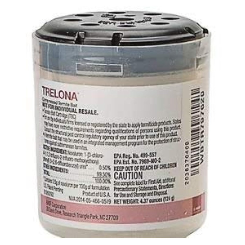 Trelona is a compressed termite bait that has an active ingredient, novaluron, which is an insect growth inhibitor. When Trelona is eaten by the termite, novaluron harms the ability to properly synthesize and inhibits the termite to molt. When this is consumed by a termite, it will impair the ability of a termite to properly synthesize chitin and disallow the termite to molt. By being unable to molt, they are not able to form a replacement exoskeleton. Termites will either die or are incapacitated by their inability to complete the molting process. Consumption of the bait will cause the termite colony to decline, and by continued consumption, the remaining termites may result in the total elimination of the colony. Box comes with 6 bait cartridges. Net weight: 6 x 4.37 ounces (6 x 124 grams) Application:Apply this product only as specified on this label. Choose locations at or near areas of know or suspected termite activity. Do not place product in areas where termiticides have been applied, at least 3' of the foundation wall. Install stations within 5 ft of points of know termite foraging, but that 2 stations maximum distance between each other does not exceed 20 ft. This product is a professional strength termite killer used by termite pro's around the country. If you were wondering how to kill termites, you have found the answer.