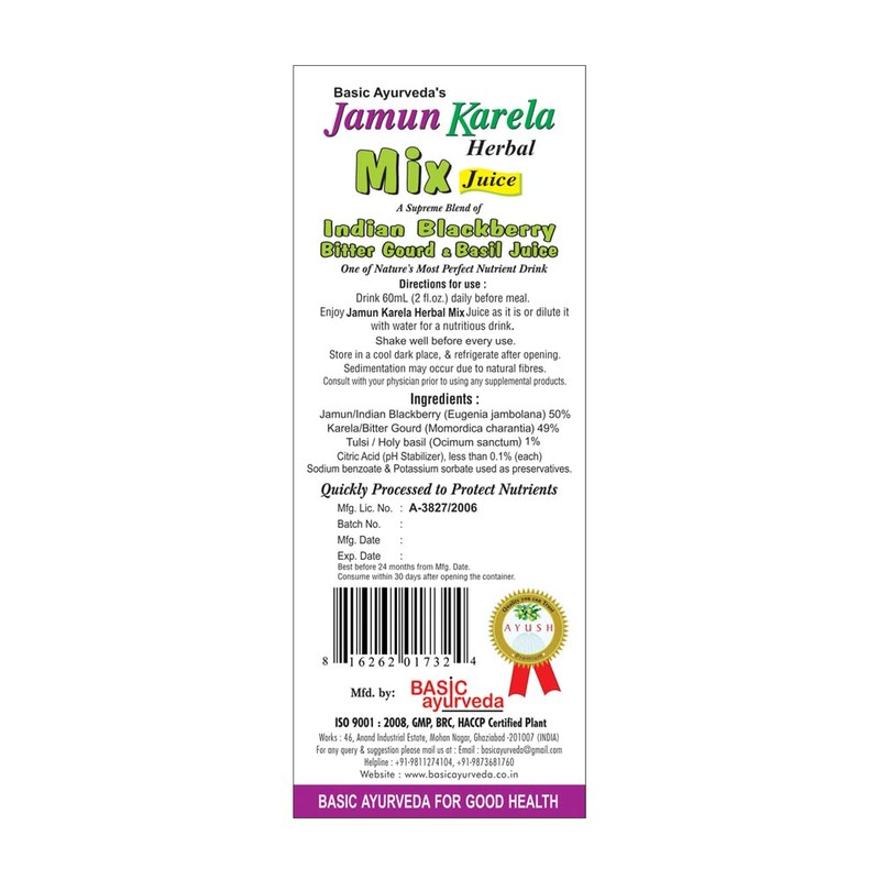 - Bitter Melon and Jamun Juice is an excellent source of all essential nutrients.