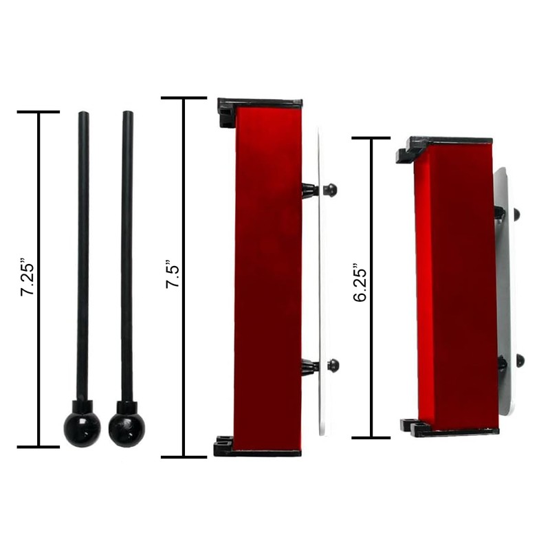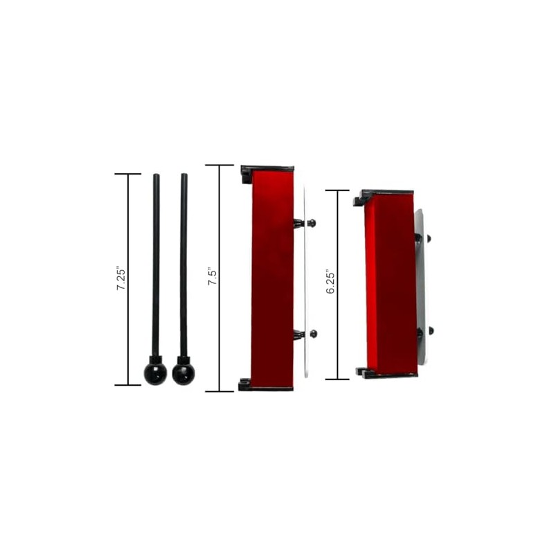 this red plastic resonator bell set includes d5 and a5 bells as well as two plastic mallets 7-1/4″ in length.