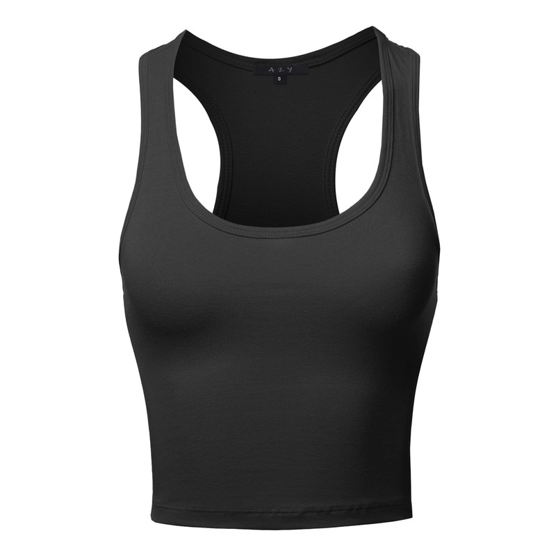 Basic Cotton Scoop Neck Sleeveless Cropped Racerback Tank Tops Black S