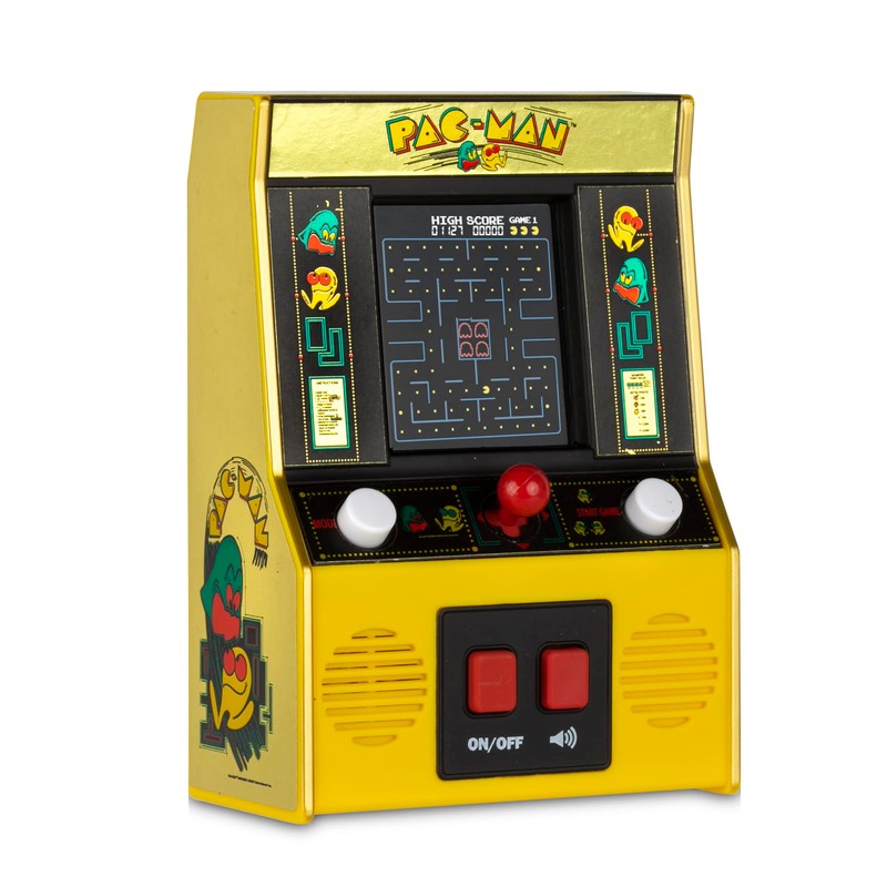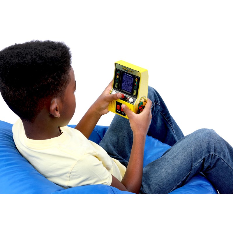 Kids and kids at heart will love this color LCD miniature version of Pac-Man, the most popular arcade game of all time! Use the joystick to navigate Pac-Man around the maze, eating dots and avoiding the ghosts! Gulp down a power pellet and then eat ghosts for extra points! Eat all the dots to complete the level. Two cool play modes. Includes 3 AA batteries.
