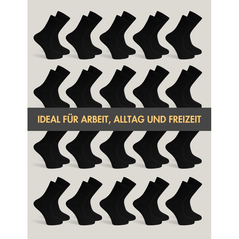 - Large pack: 20 pairs of high-quality socks for men in 35-38 in black made of elastic cotton blend - perfect for everyday needs - business and leisure. The socks have a classic shape and match different outfits and styles.