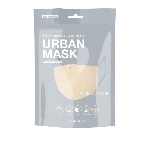 BasicSense 100% Cotton Washable Reusable Skin Friendly Plain Face Coverings Masks (Beige)