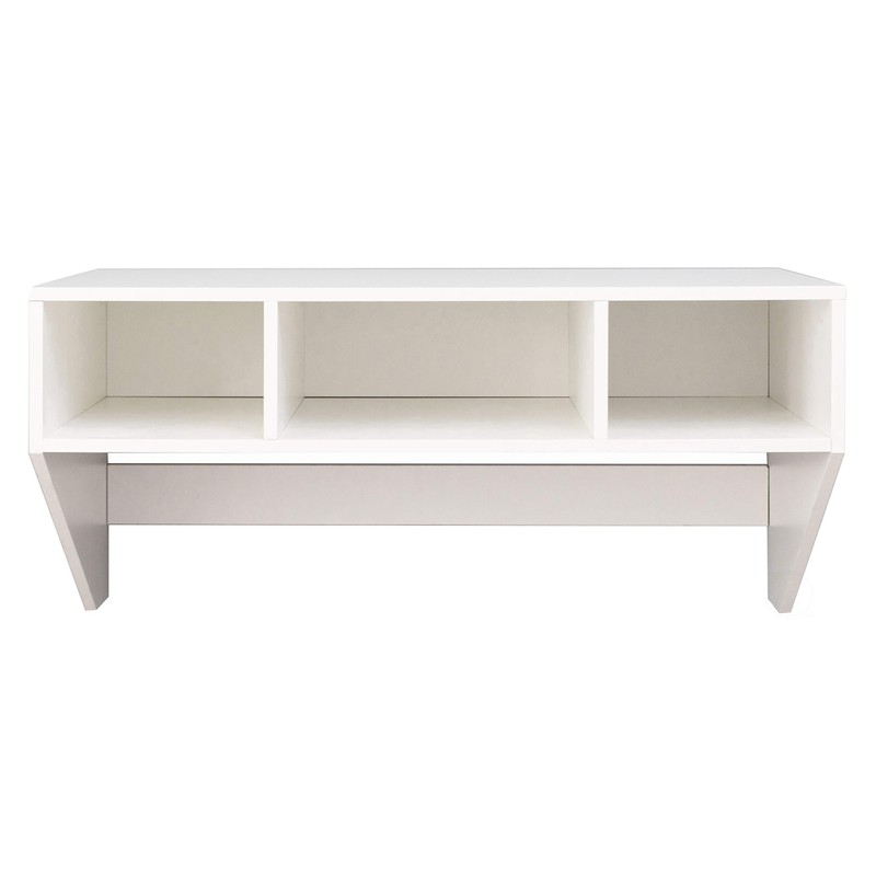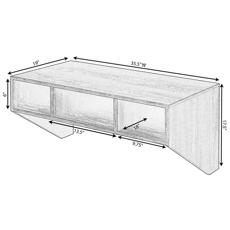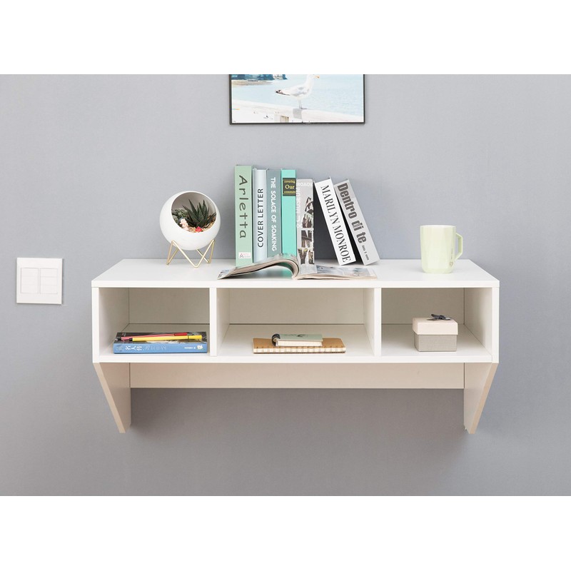 Create the perfect desk area with this wall mounted computer desk. Three open compartments below the desk provide ample storage to keep your personal items handy. Basic design fits into any style room decor, this can also be mounted to any desired height. Composed out of durable wood, this desk offers a sturdy base to hold office essentials neat and organized.