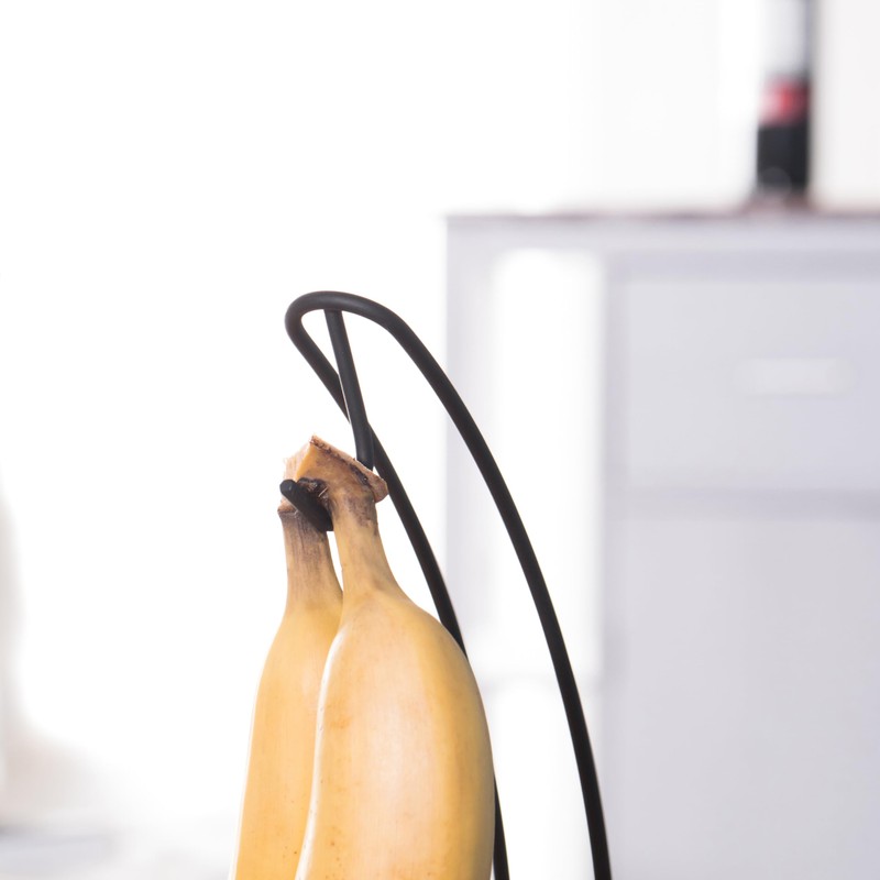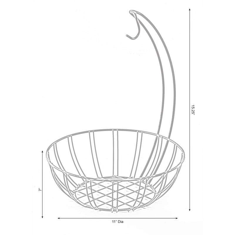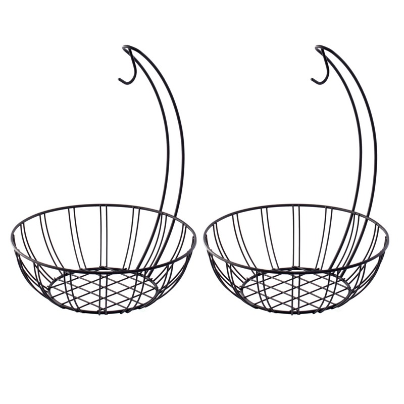 Basicwise Wire Metal Fruit Basket Holder with Banana Hanger, Black, (QI003494)
