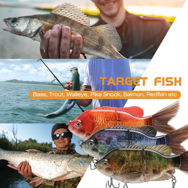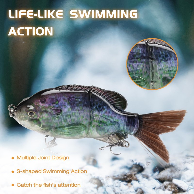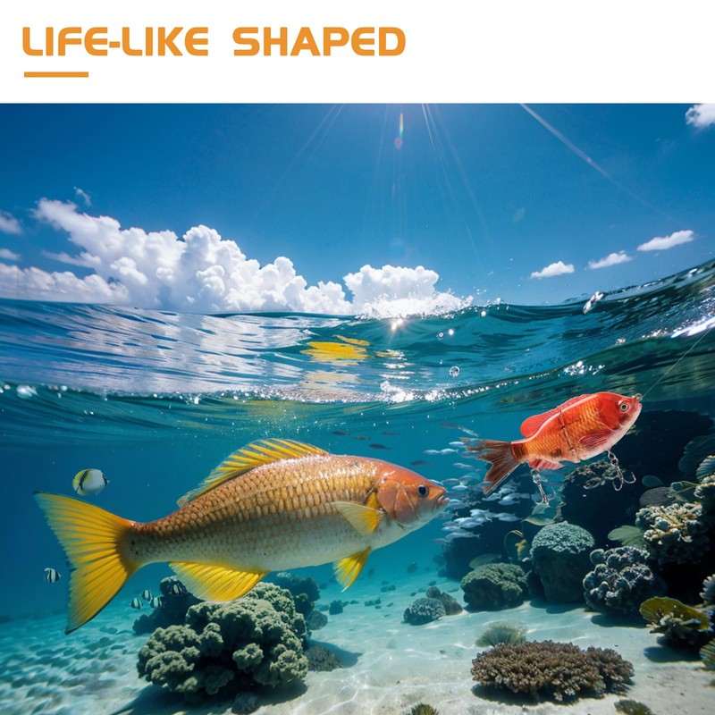 - Well-Made: It is a multi-jointed bait, which allows the bait to present a flexible and realistic S-shaped swimming motion in the water, mimicking the movement of the real fish to attract other fish to attack the bait.