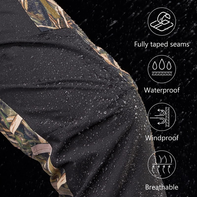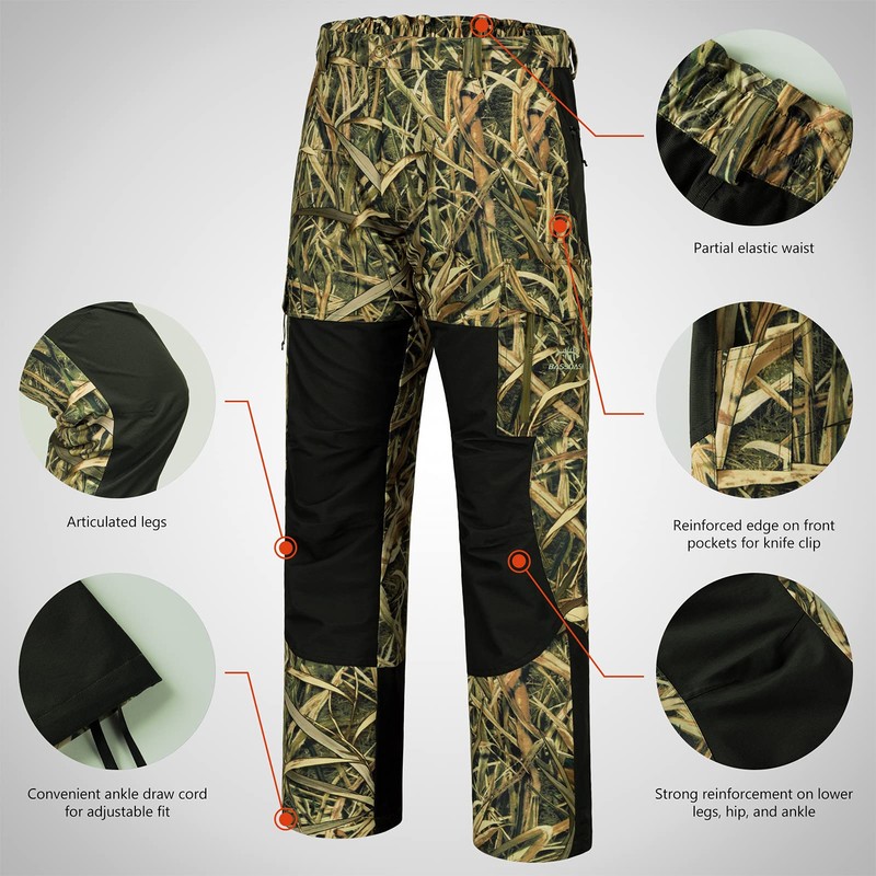BASSDASH Splice Men’s Waterproof Breathable Hunting Pants Ripstop Camo Fishing Rain Pant