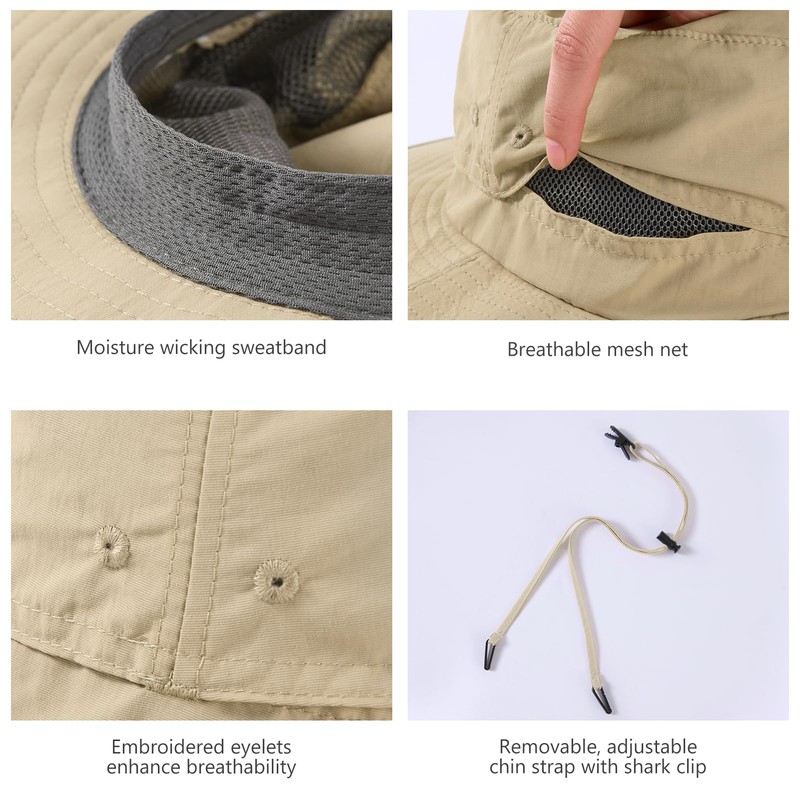 - 3.3in wide brim shades your ears, face, and head; 11.8in long back flap protects the neck and it can be tucked into a hidden pocket under the brim when not needed