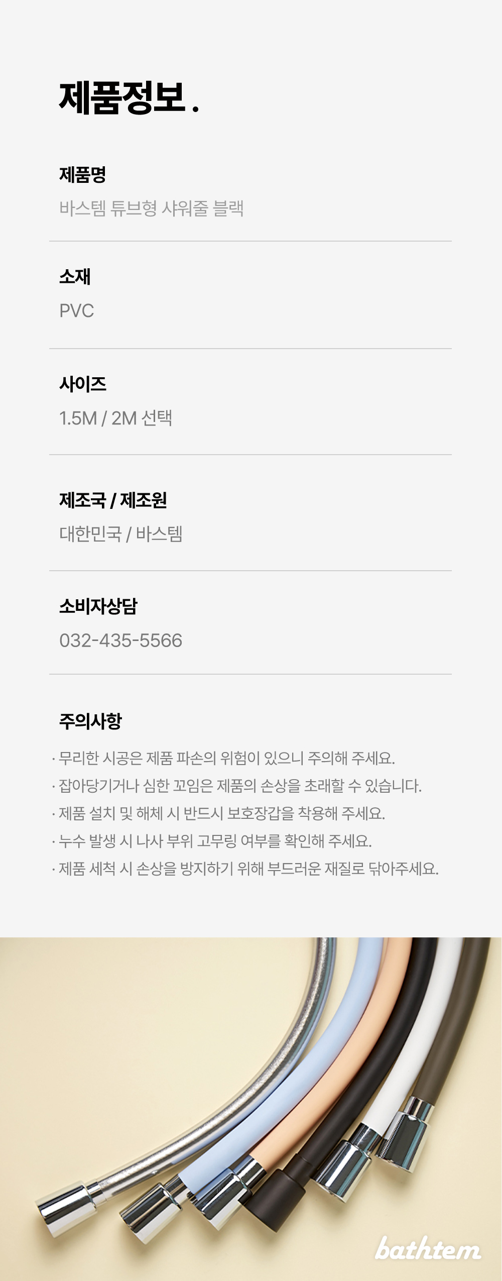 Bastem Anti-scale tubular shower line [Black] 2M / 바스템 물때가 끼지 않는 튜브형 샤워줄 [블랙] 2M