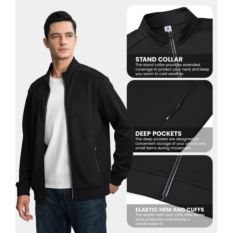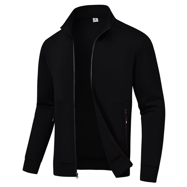 BASUDAM Men's Track Jackets Lightweight Warm Up Casual Coat Athletic Workout Running Jacket with Zipper Pockets Black XXL